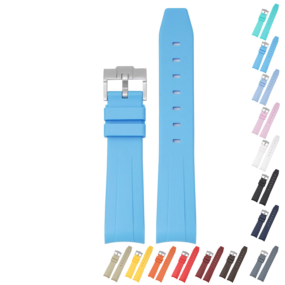20mm Curved End Rubber Band For Rolex Daytona And GMT, Replacement Watch Bands With Buckle For Rolex Watches Silicone Rubber Watch Strap