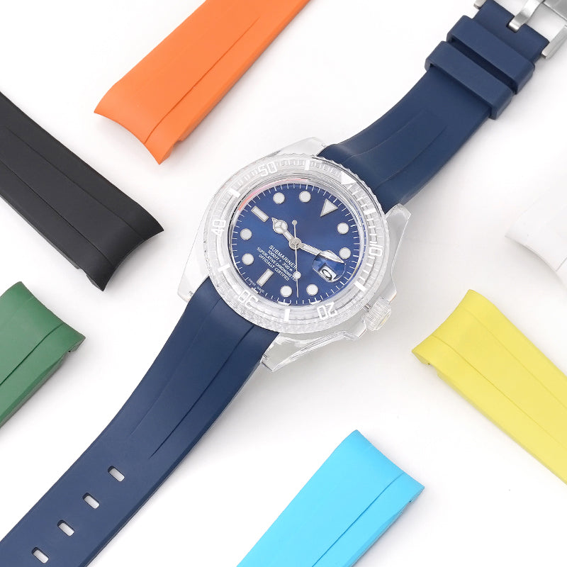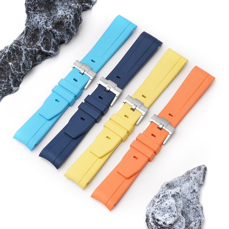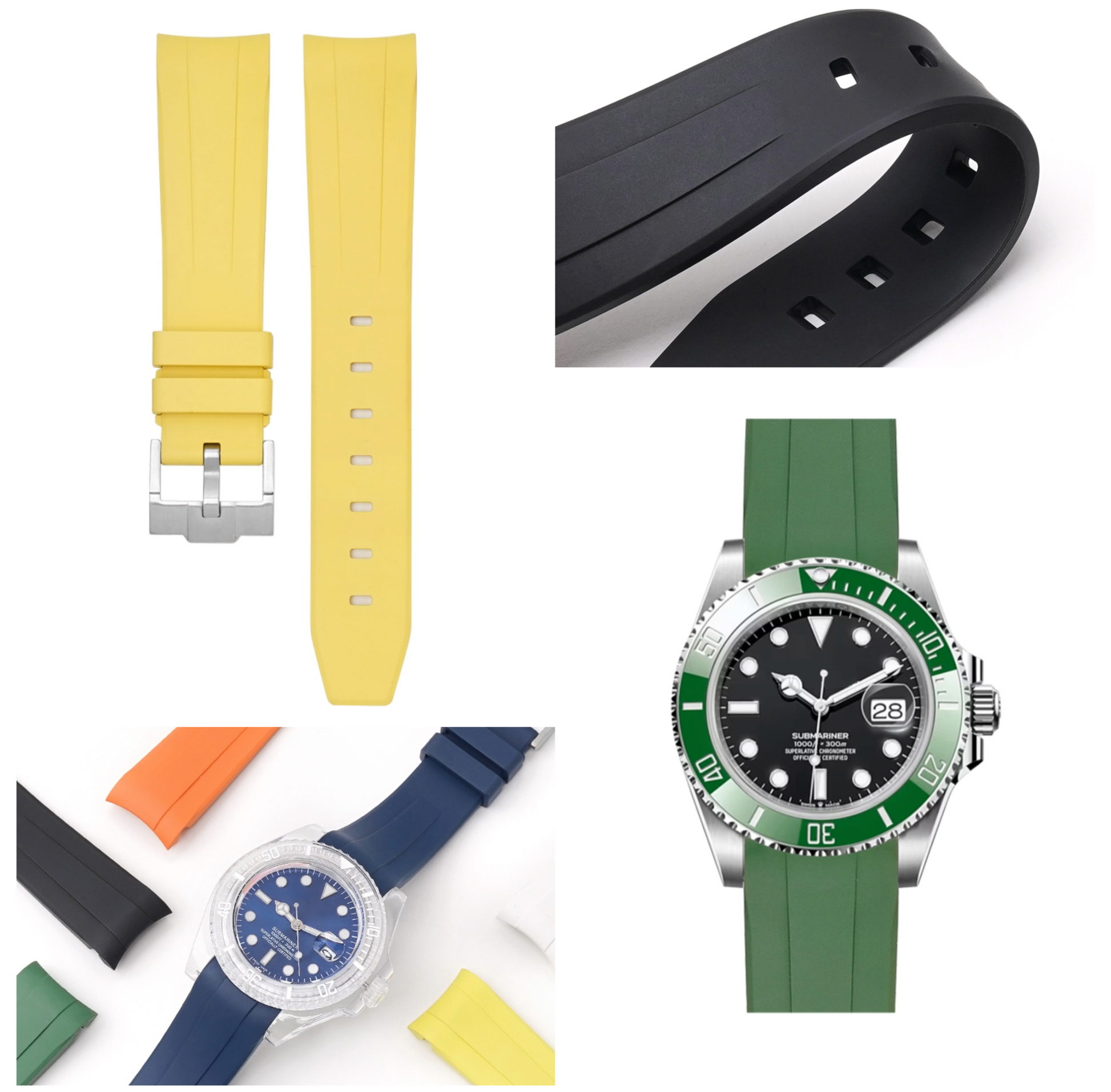 20mm FKM Rubber Band For Rolex Watches, Curved End 20mm Rubber Watch Band For Rolex Watches