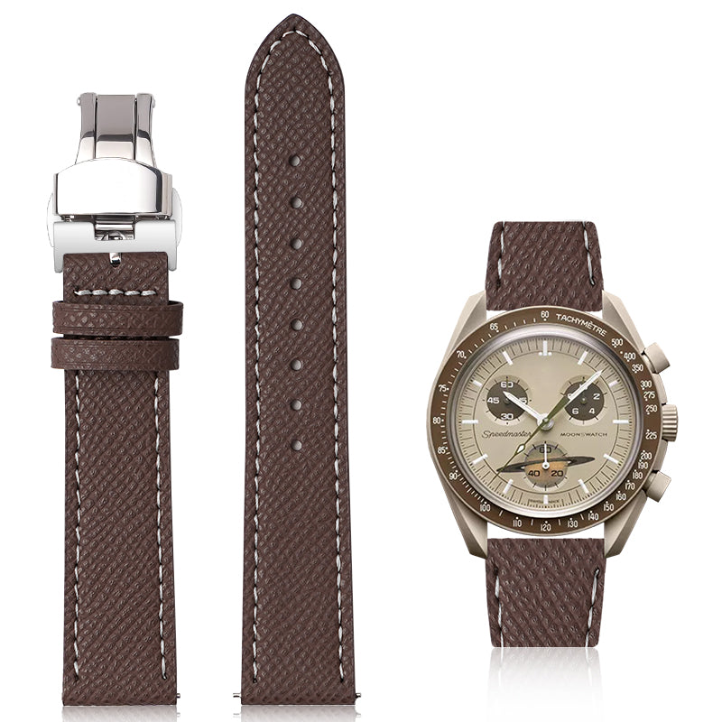 - Color Options: Epsom leather straps are often available in a variety of colors. Common choices include classic shades such as black and brown, as well as more vibrant and contemporary options. The diverse color palette allows individuals to customize their watches according to personal style preferences. Perfact Fit For Omega Watches, speedmaster and Moonswatch.