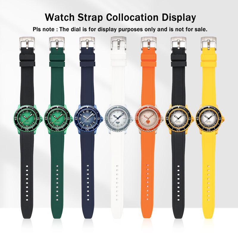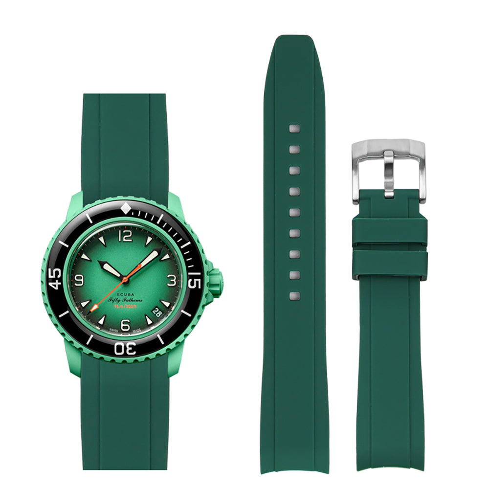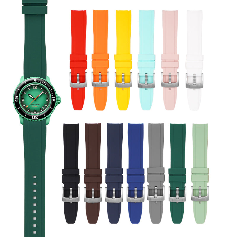 22mm Curved End Rubber Band For Blancpain X Swatch, Replacement Watch Bands With Buckle For Blancpain X Swatch - Multiple Colors