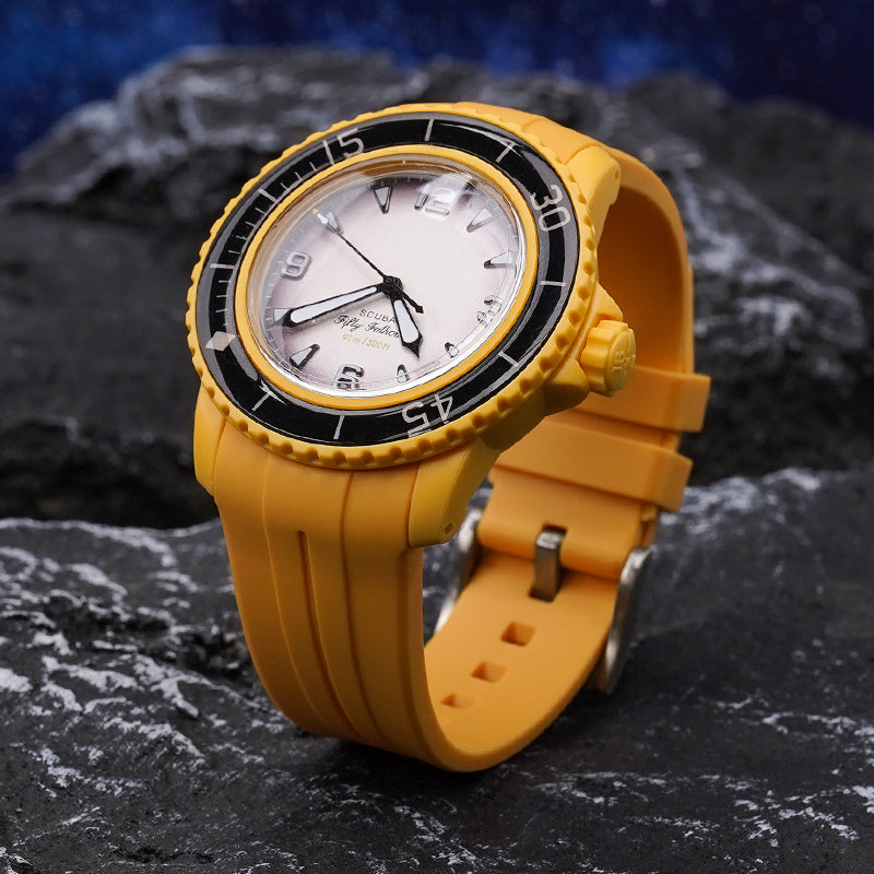 - Upgrade your Blancpain X Swatch timepiece with our specially rubber band, designed to enhance both the aesthetics and performance of your watch. Blancpain X Swatch Fifty Fathoms Rubber Band