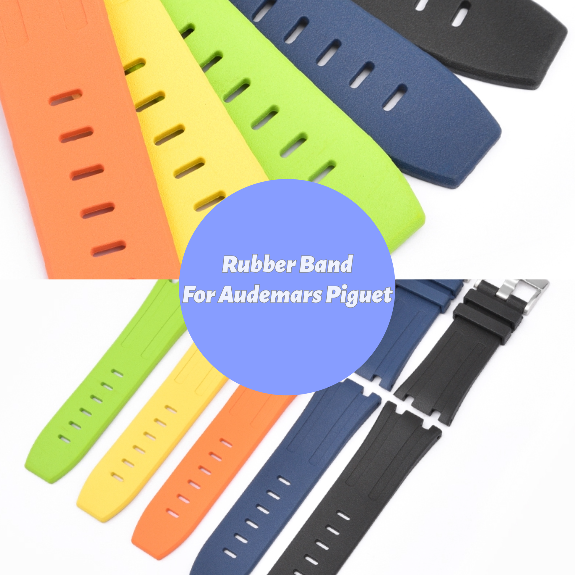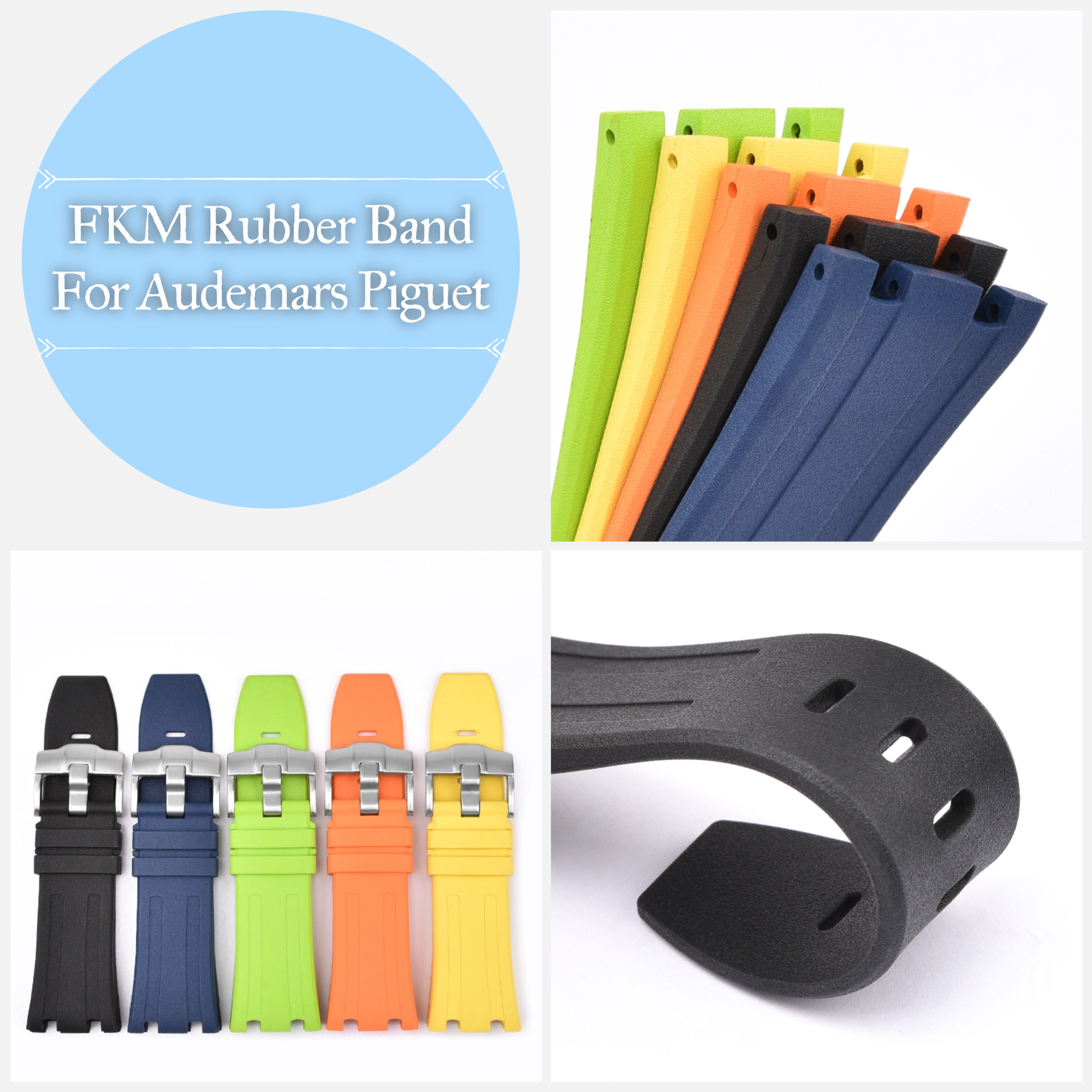 - Material: Our Rubber Band Made from high-quality FKM rubber. These materials are chosen for their durability, comfort, and resistance to water, making them suitable for Audemars Piguet watches.