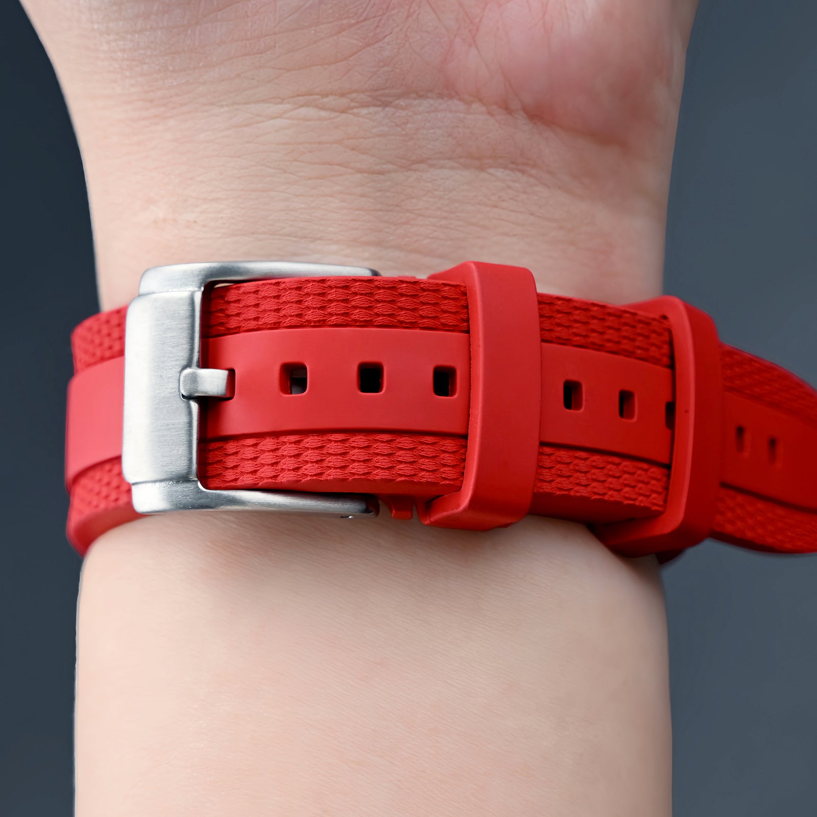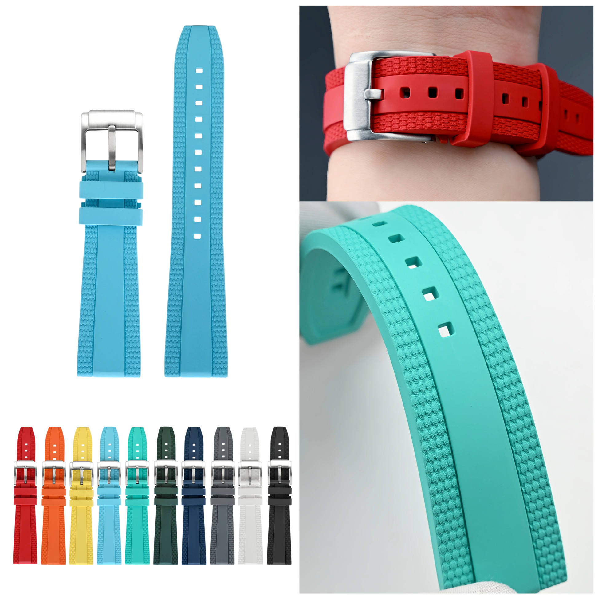 - High-Performance Material: Crafted from premium FKM rubber (fluoroelastomer), this watch band offers exceptional durability, flexibility, and resistance to water, sweat, and UV light.